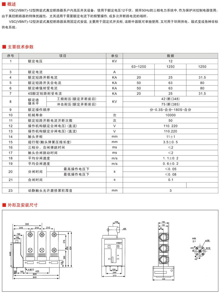 VSC(VBM7)-12側(cè)裝式戶內(nèi)高壓真空斷路器